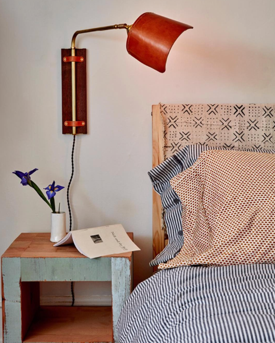 Add an element of elevated design to your walls with the Ava Wall Sconce. A perfect marriage of form and function, its brass arm and full range of motion shade lock into place with a simple brass swivel bar making the Ava ideal for spotlighting or curling up under with your favorite novel. The union of black walnut or white oak, brass, and hand-sewn leather make a sophisticated statement while integrating seamlessly with a wide range of design sensibilities. Made in the USA by Robert True Ogden for Lostine. Offered in Black, Tan or Natural Harness leather and a Black Walnut or White Oak backplate.